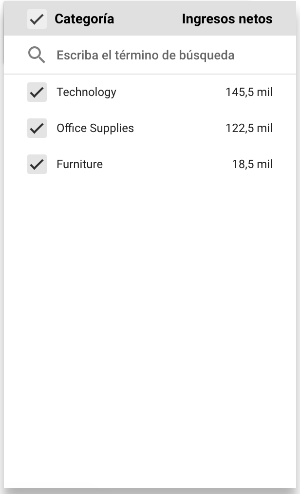 Vamos a añadir una lista desplegable con la categoría de producto y a ver si vemos alguna diferencia entre las 3 que hay (Office supplies, Technology, Furniture).