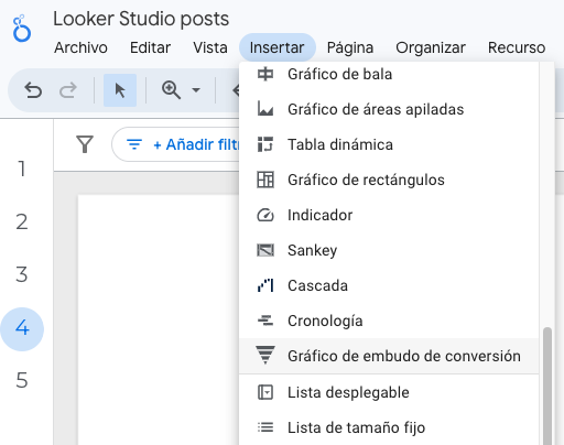 📊 Paso 2: Añade el gráfico de embudo de conversión en Looker Studio