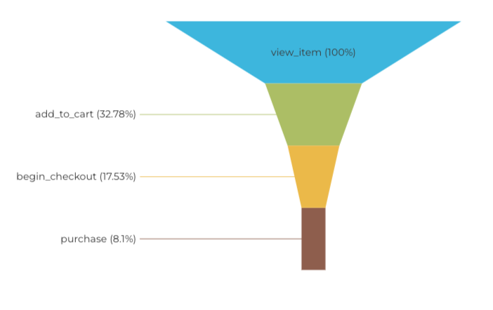 - Por defecto, Looker Studio mostrará un embudo con todos los eventos. A continuación, aplicaremos un filtro para centrarnos en los eventos de ecommerce relevantes.