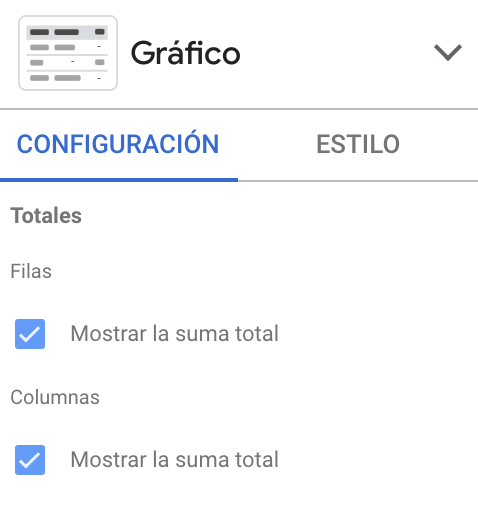 Dentro de Configuración puedes activar Mostrar la suma total de las filas y de las columnas para que se muestra una fila y una columna con los totales.