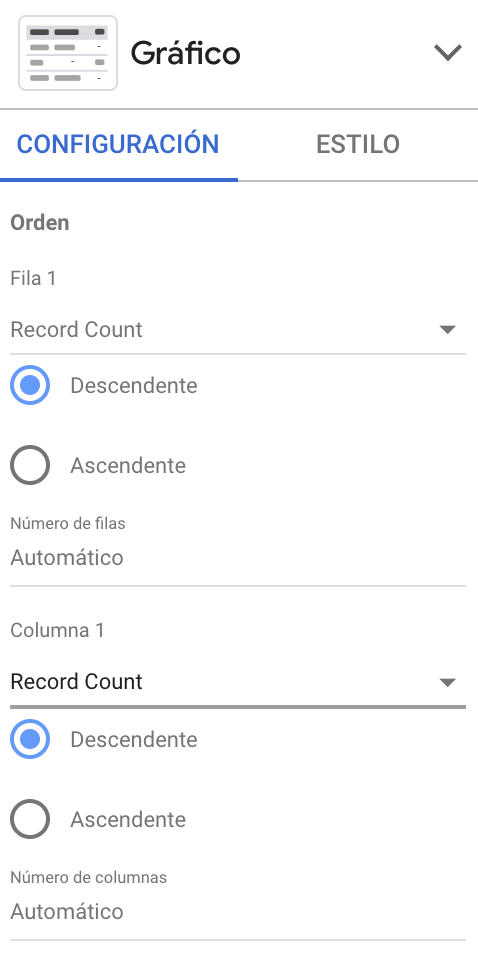 Además, puedes elegir qué campo determinará el orden tanto de la primera fila como de la primera columna.