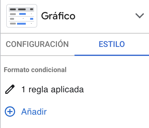 Dentro de Estilo puedes dar formato condicional a tus celdas, donde mostrarán un color u otro dependiendo del valor de la métrica. Puedes hacerlo dándole a Añadir debajo de Formato condicional.
