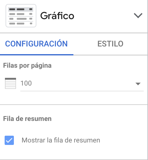 Si activas Mostrar la fila de resumen, la tabla mostrará una fila con los totales de cada métrica.